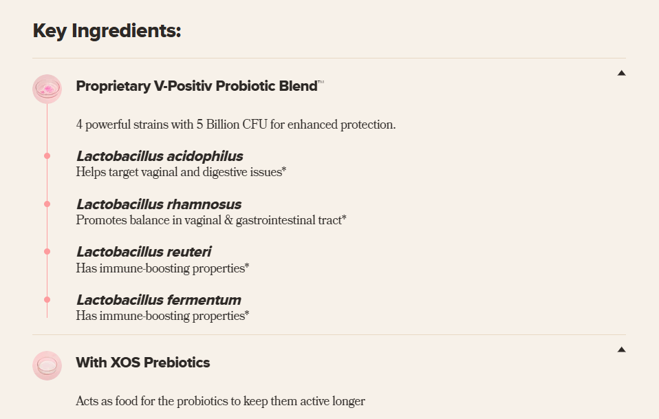 Formulated with V-Positiv Probiotic Blend™ 5 billion CFUs for healthy vaginal odor & pH.*
